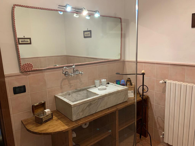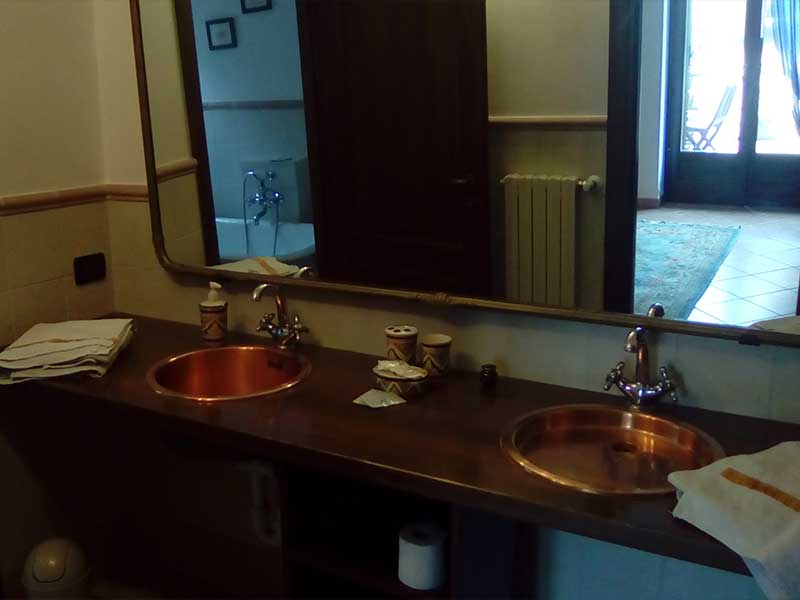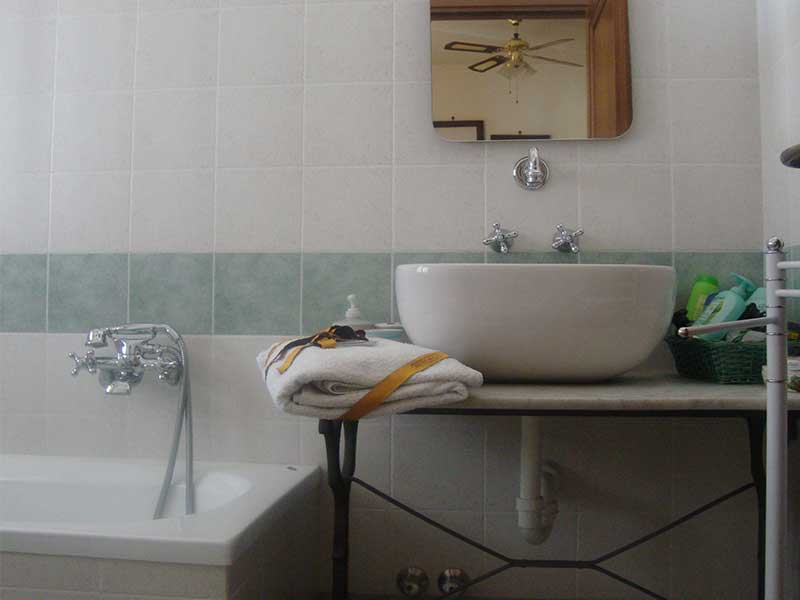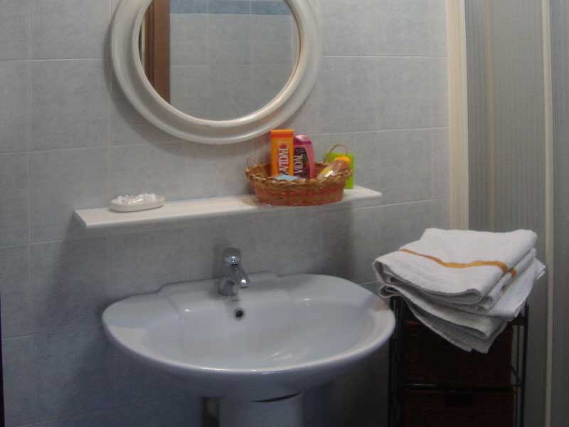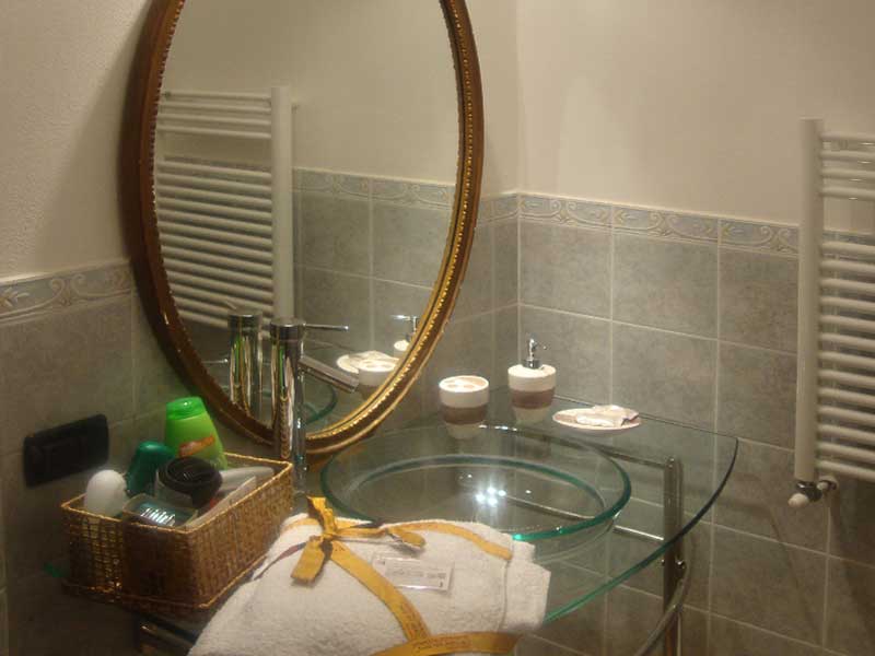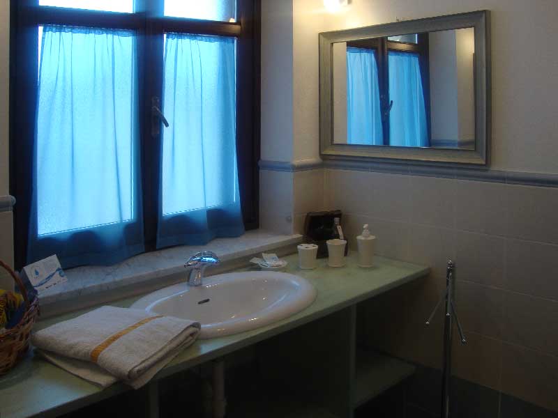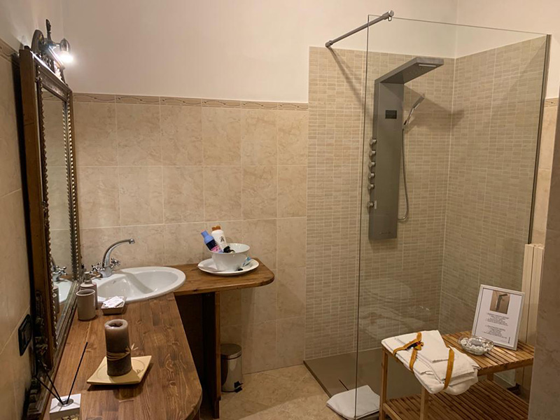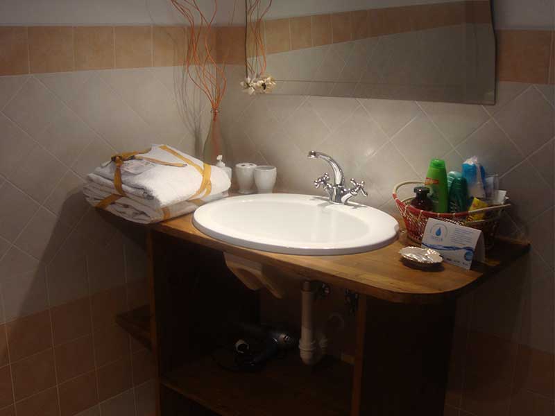 Bagno privato ed esclusivo, esterno alla camera, compreso di set cortesia.